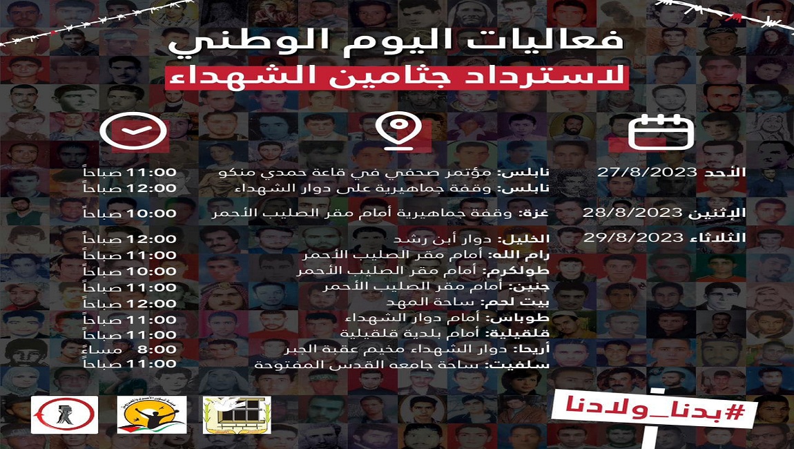 طباعة • *برنامج فعاليات لإحياء اليوم الوطني لاسترداد جثامين الشهداء* في 26 آب/أغسطس 2023. نشر في فعاليات ونشاطات
