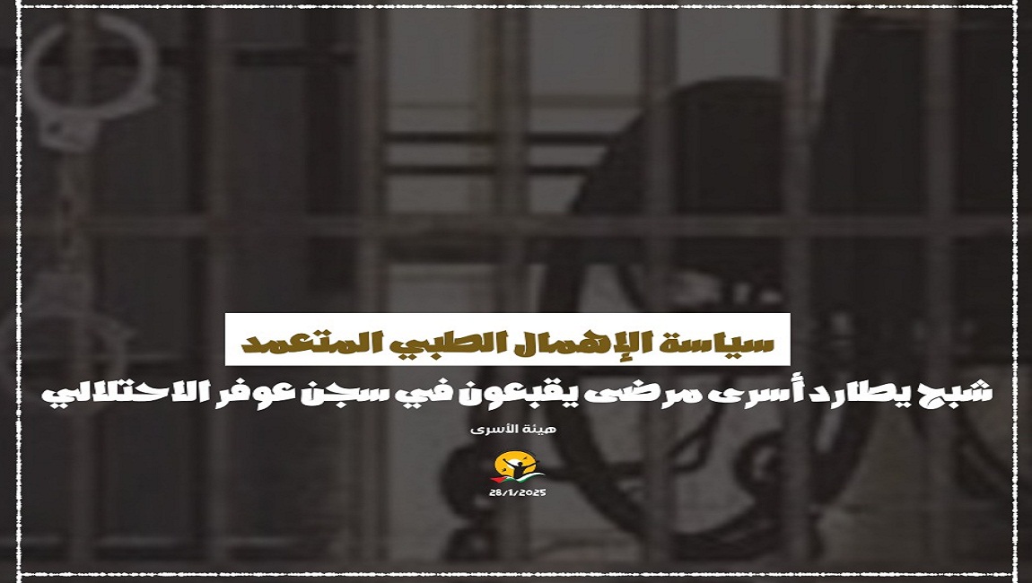 طباعة سياسة الإهمال الطبي المتعمد شبح يطارد أسرى مرضى يقبعون في سجن عوفر الاحتلالي في 28 كانون2/يناير 2025. نشر في الإهمال الطبي