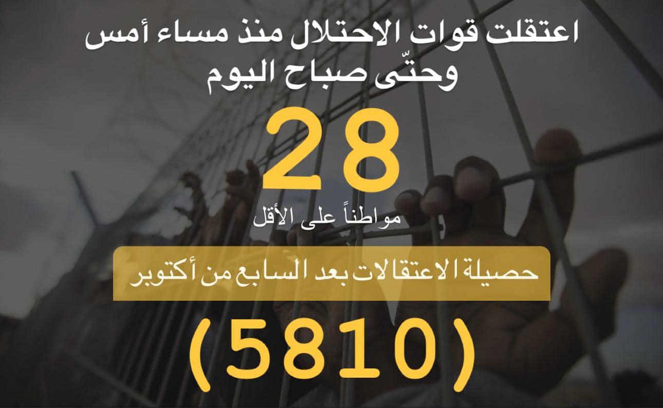 طباعة *ملخص عن معطيات حملات الاعتقال بعد السابع من أكتوبر حتى تاريخ اليوم 9/1/2024* في 09 كانون2/يناير 2024. نشر في عارض الاخبار