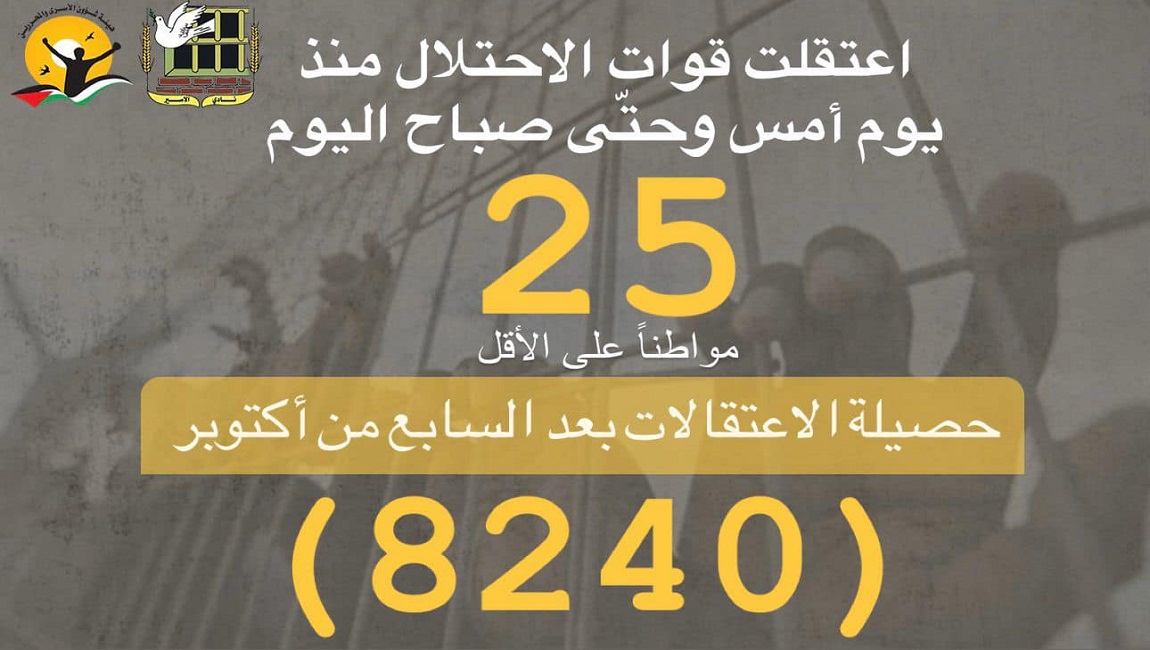 طباعة *ملخص معطيات حملات الاعتقال بعد السابع من أكتوبر حتى تاريخ اليوم 9/4/2024* في 09 نيسان/أبريل 2024. نشر في عارض الاخبار