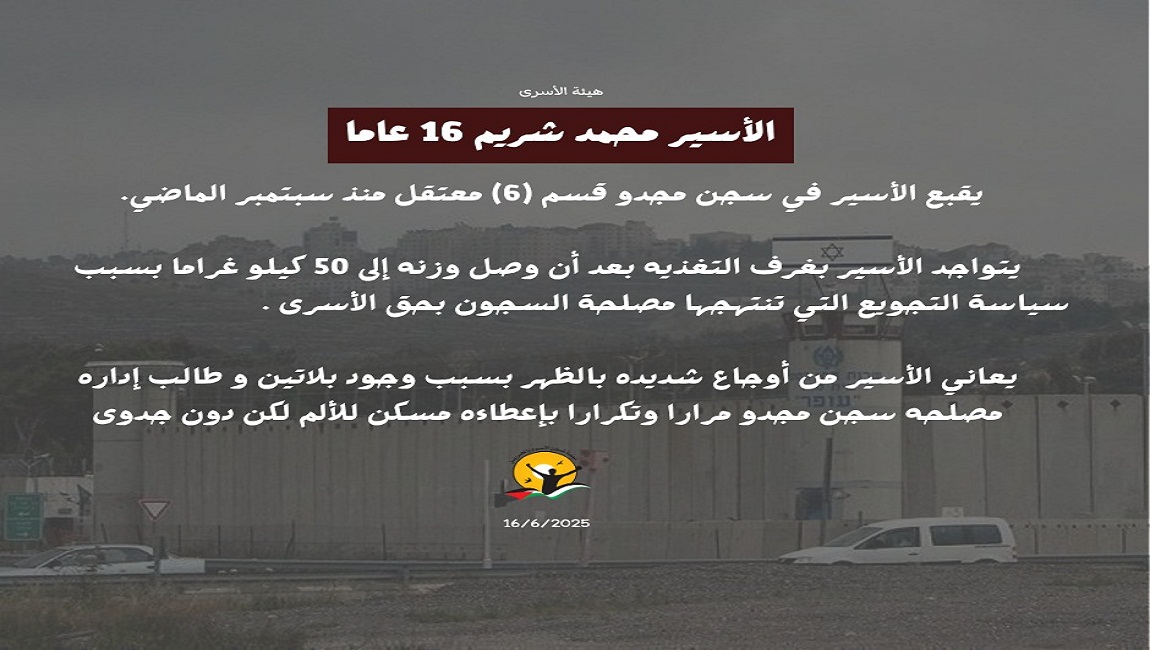 طباعة أكثر من400 طفل أسير سُلبت طفولتهم داخل سجون الاحتلال في 16 حزيران/يونيو 2025. نشر في الاخبار العاجلة