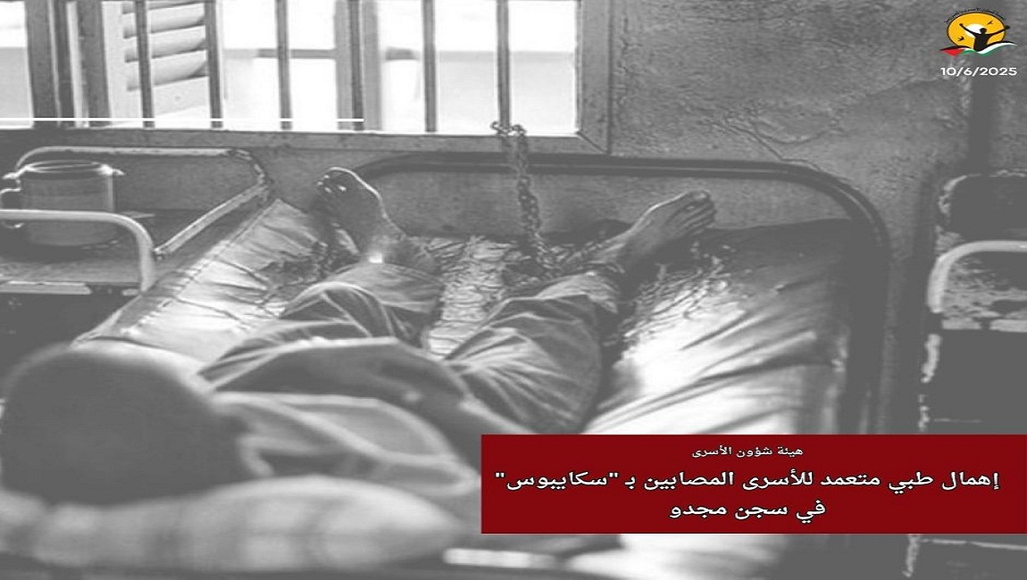 طباعة إهمال طبي متعمد للأسرى المصابين بـ "سكايبوس" في سجن مجدو في 10 حزيران/يونيو 2025. نشر في الاخبار العاجلة