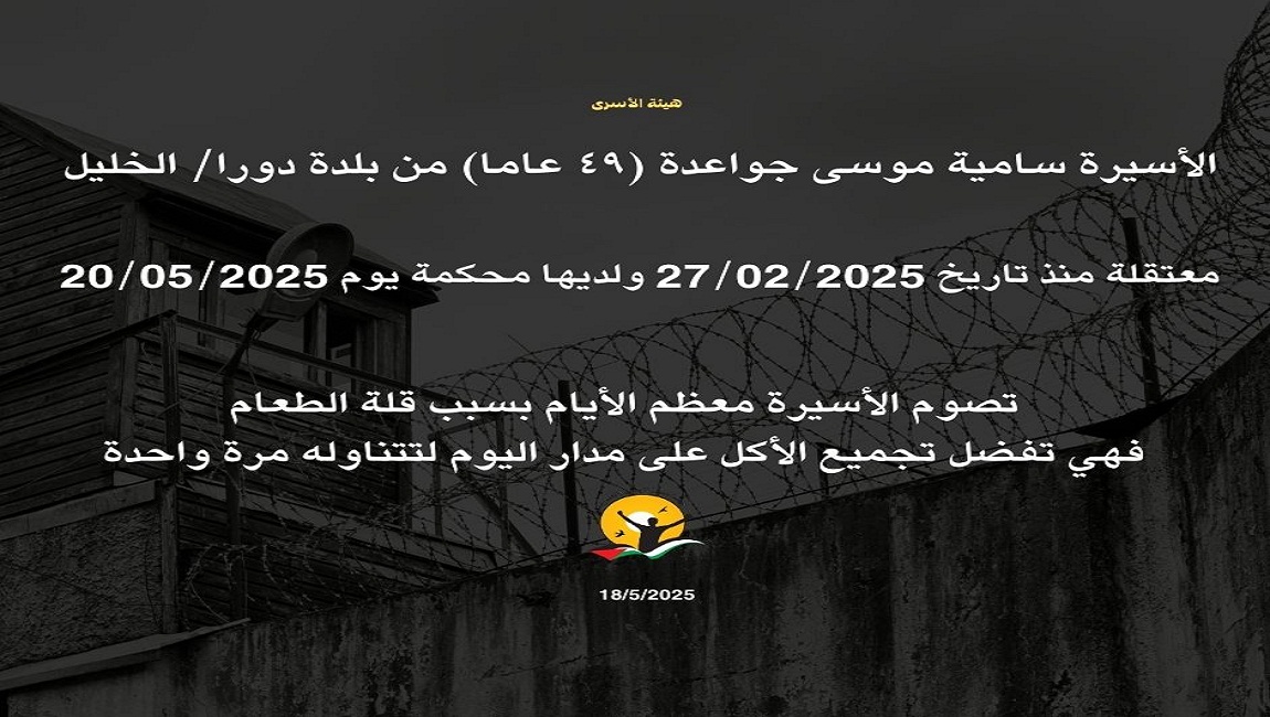 الوضع الاعتقالي للأسيرة سامية جواعدة من محافظة الخليل