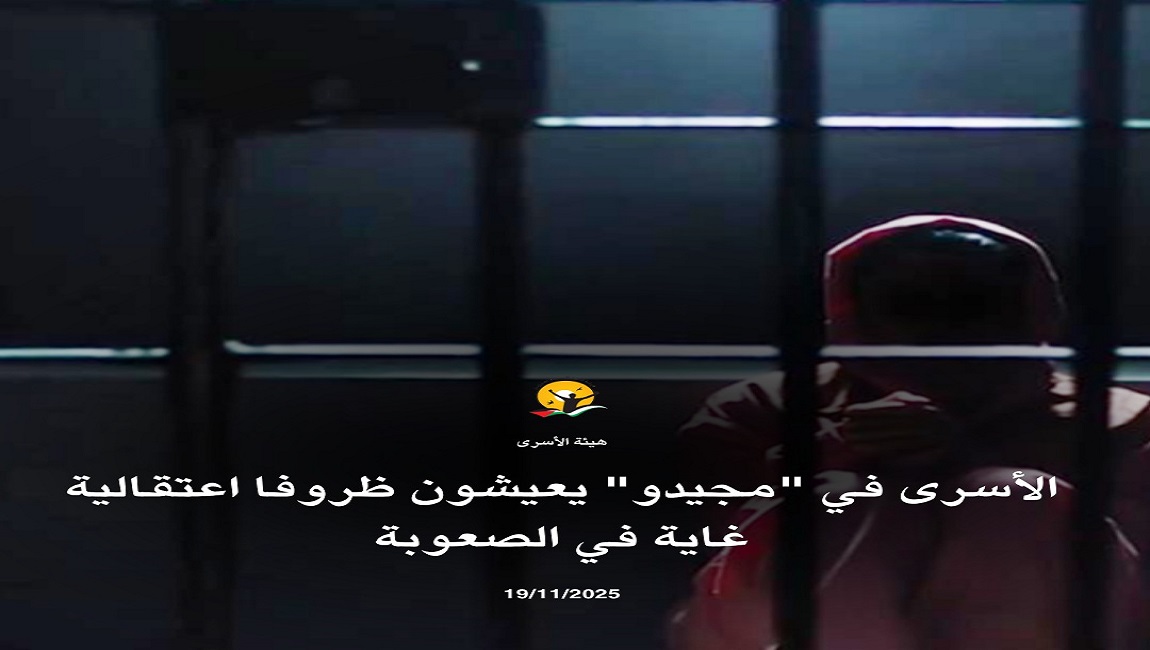 طباعة الأسرى في "مجيدو" يعيشون ظروفا اعتقالية غاية في الصعوبة في 19 تشرين2/نوفمبر 2025. نشر في الاخبار العاجلة