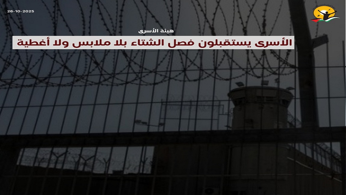 طباعة الأسرى يستقبلون فصل الشتاء بلا ملابس ولا أغطية في 26 تشرين1/أكتوير 2025. نشر في الاخبار العاجلة