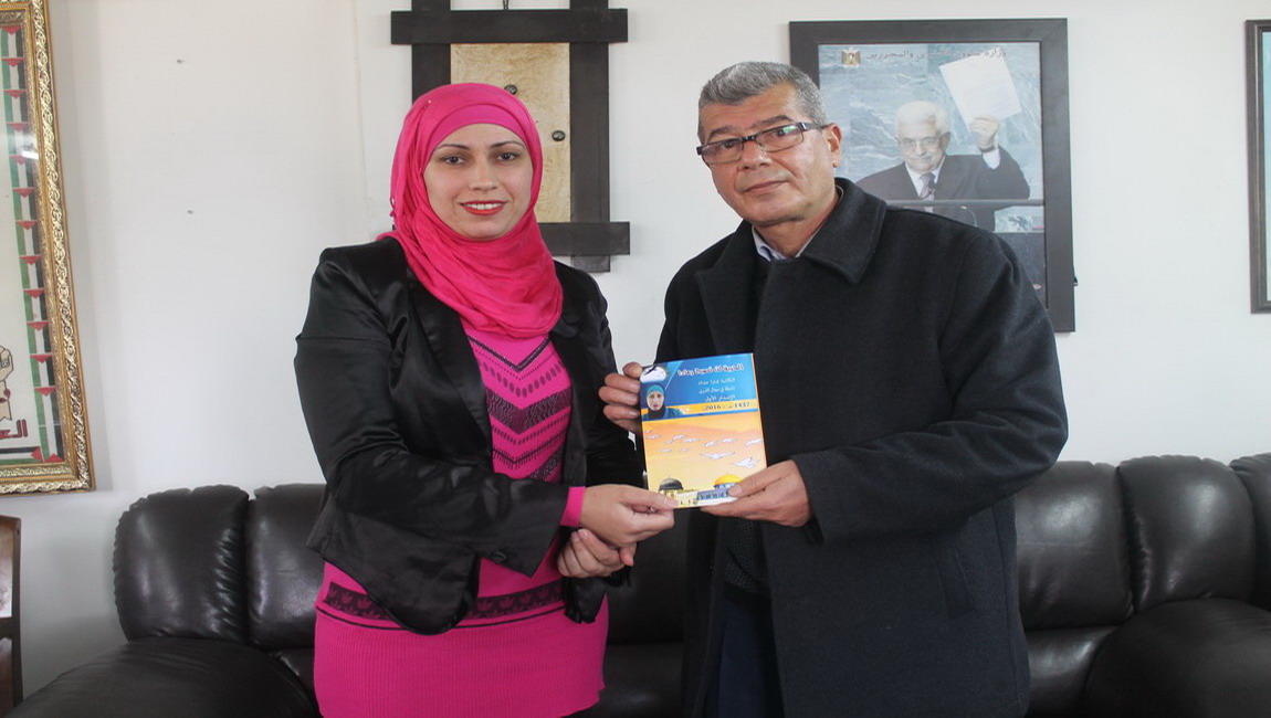 طباعة هيئة الأسرى: الكاتبة حداد تهدي الوزير قراقع مؤلفها (الحرية لن تصبح رمادا في 17 آذار/مارس 2016. نشر في الاخبار