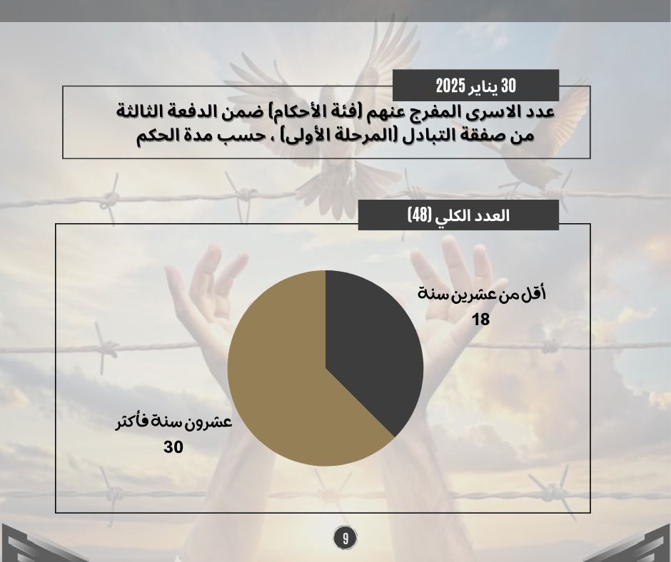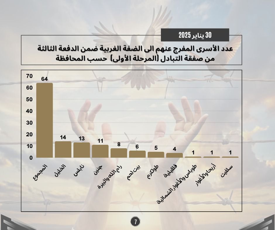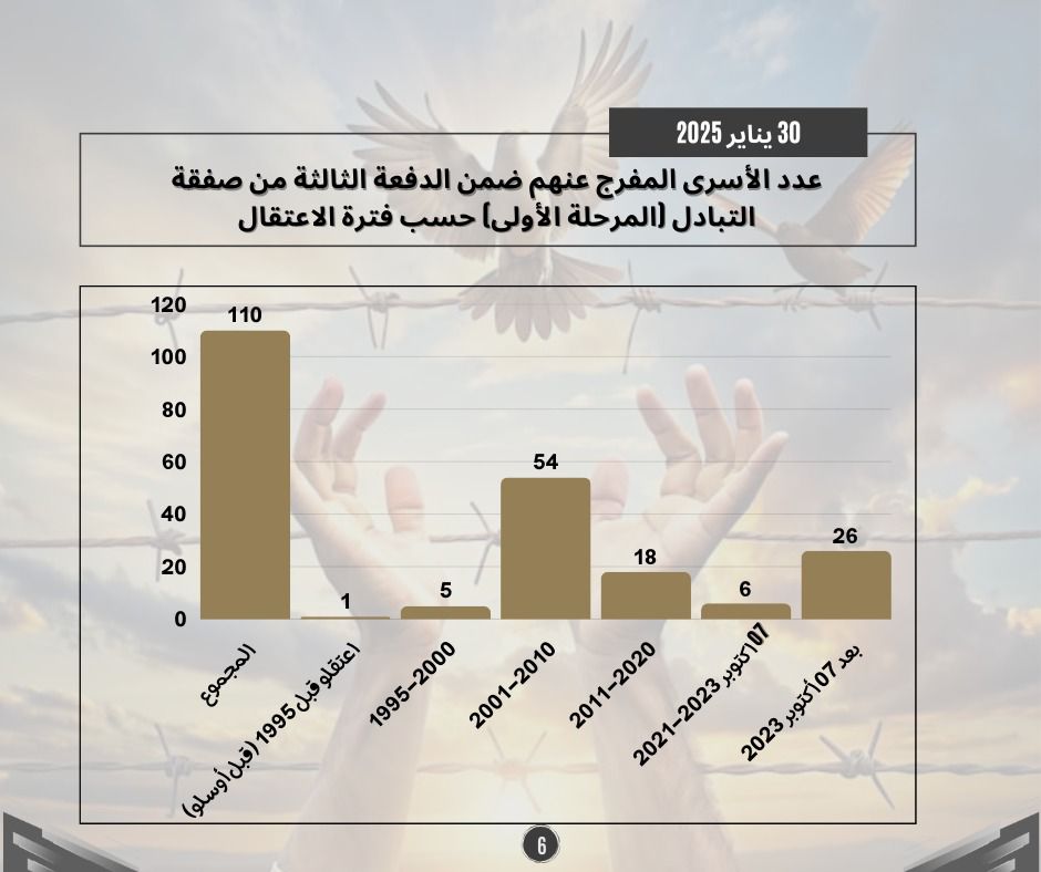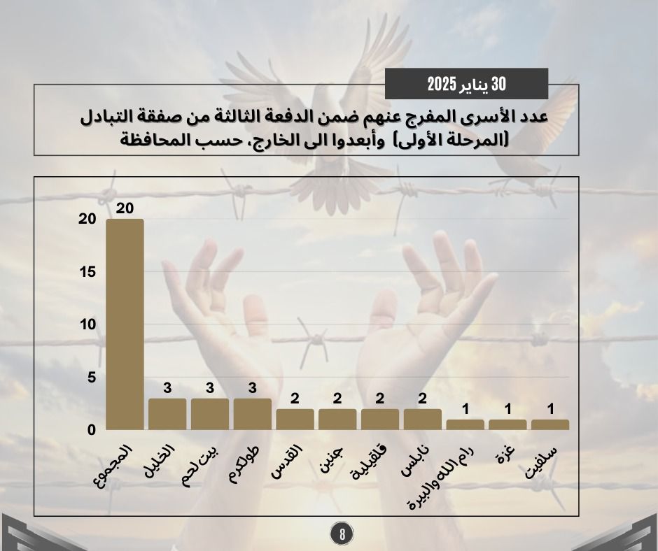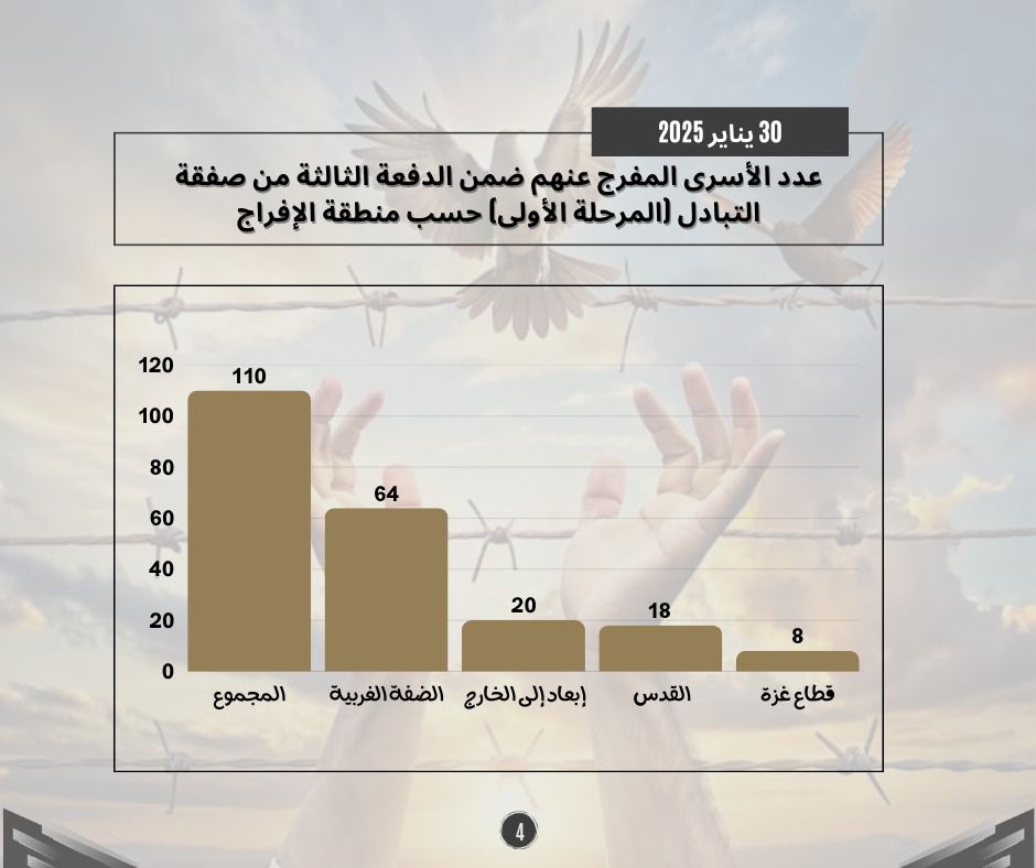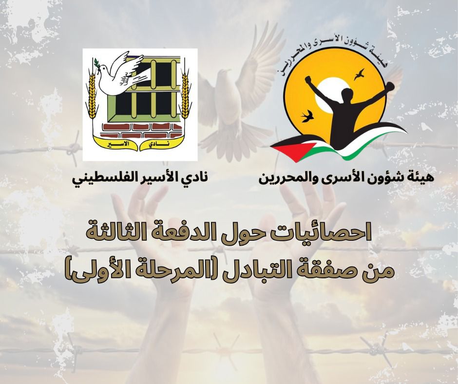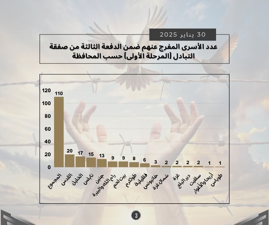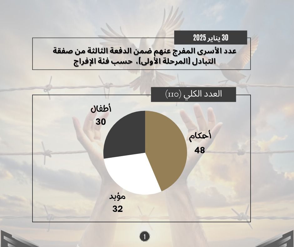 طباعة احصائيات حول الدفعة الثالثة من صفقة التبادل (المرحلة الأولى) 01 فبراير 2025 في 05 شباط/فبراير 2025. نشر في تقارير احصائية لتحميل الملف انقر هنا
