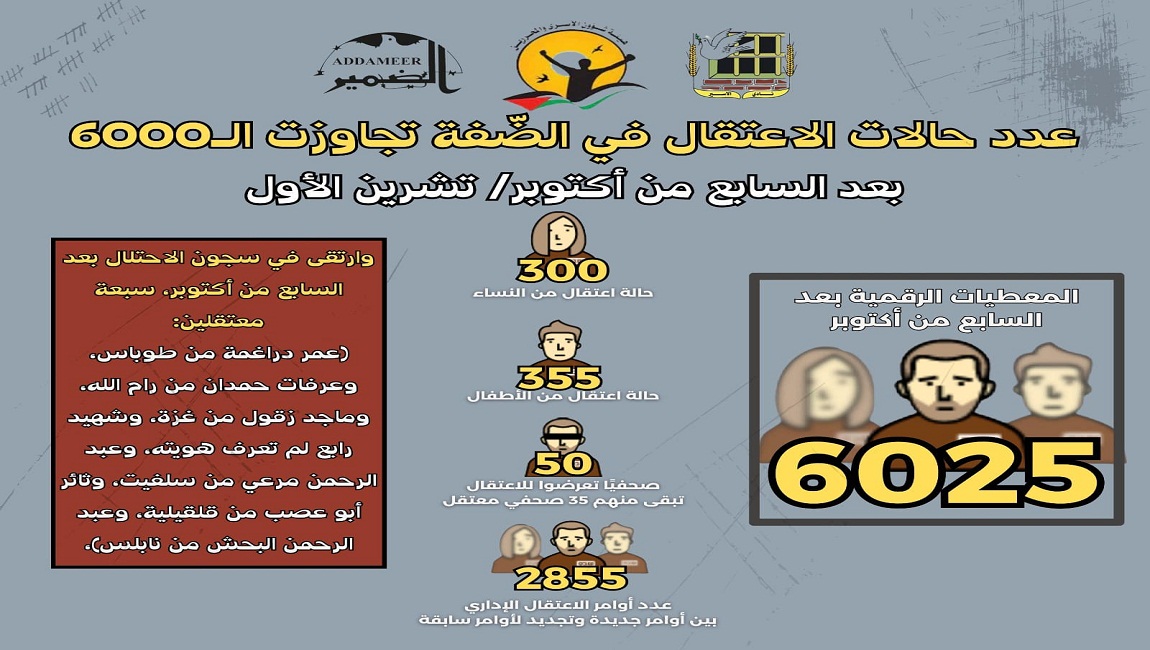 طباعة *عدد حالات الاعتقال في الضّفة تجاوزت الـ6000 بعد السابع من أكتوبر/ تشرين الأول* في 17 كانون2/يناير 2024. نشر في تقارير احصائية