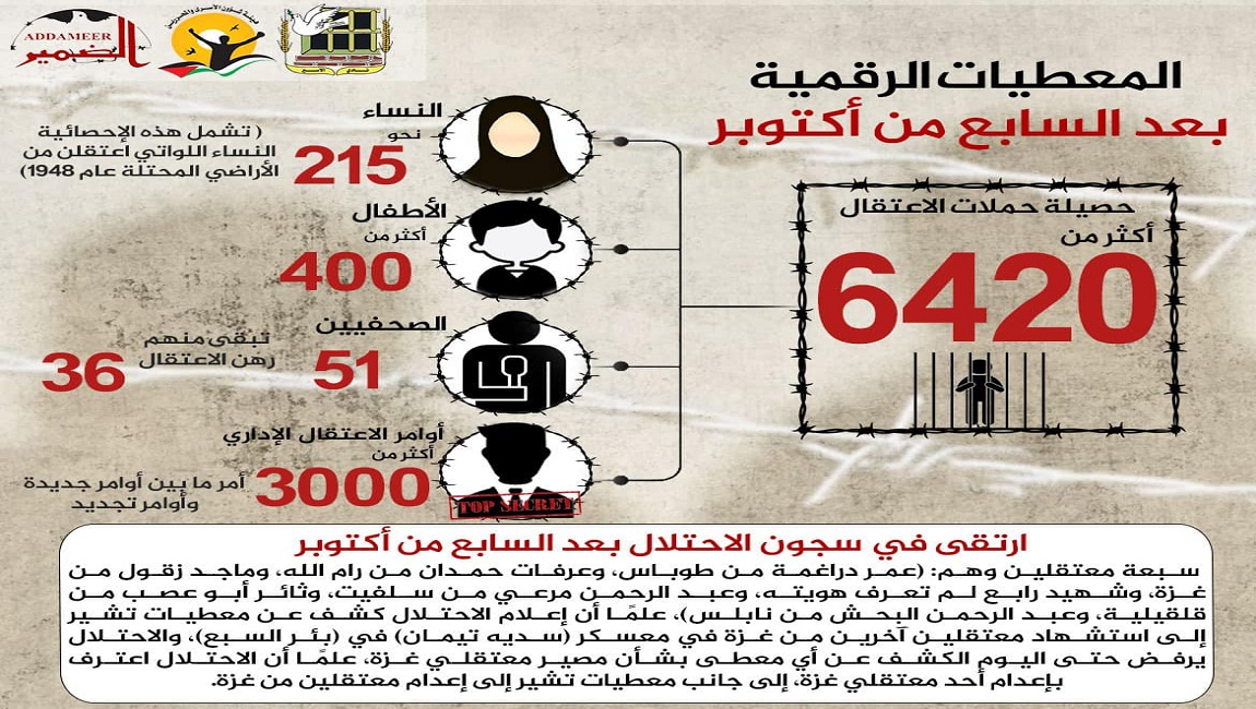 طباعة *ملخص عن معطيات حملات الاعتقال بعد السابع من أكتوبر حتى تاريخ اليوم 21/12/2023* في 21 كانون1/ديسمبر 2023. نشر في تقارير احصائية