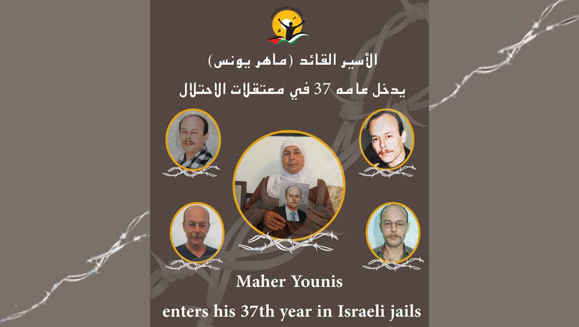 طباعة ماهر يونس ثاني أقدم أسير فلسطيني في سجون الاحتلال يدخل عامه (37) في المعتقل في 17 كانون2/يناير 2019. نشر في الاسرى القدامى