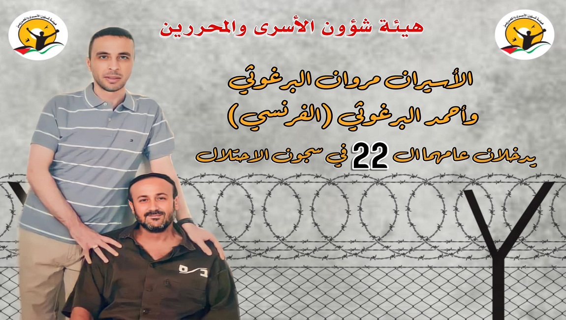 طباعة الاسيران مروان البرغوثي واحمد البرغوثي يدخلان عامها ال 22 في سجون الاحتلال في 14 نيسان/أبريل 2023. نشر في الاسرى القدامى
