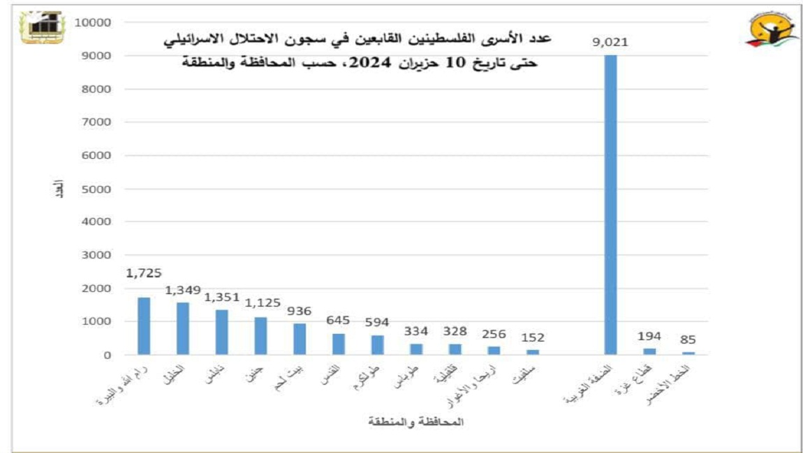 طباعة عدد الاسرى الفلسطينين القابعين في سجون الاحتلال حتى تاريخ 10 حزيران2024، حسب المحافظة والمنطقة. في 10 حزيران/يونيو 2024. نشر في السجون والمعتقلات