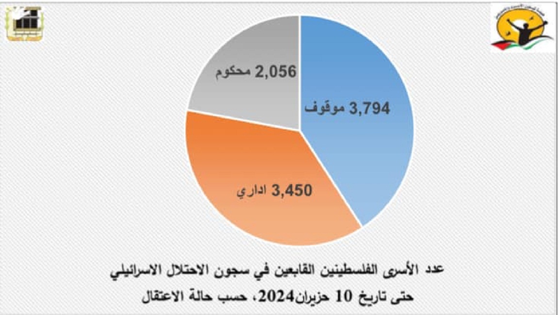 طباعة عدد الاسرى الفلسطينين القابعين في سجون الاحتلال الاسرائيلي حتى تاريخ 10 حزيران2024، حسب حال الاعتقال في 10 حزيران/يونيو 2024. نشر في السجون والمعتقلات