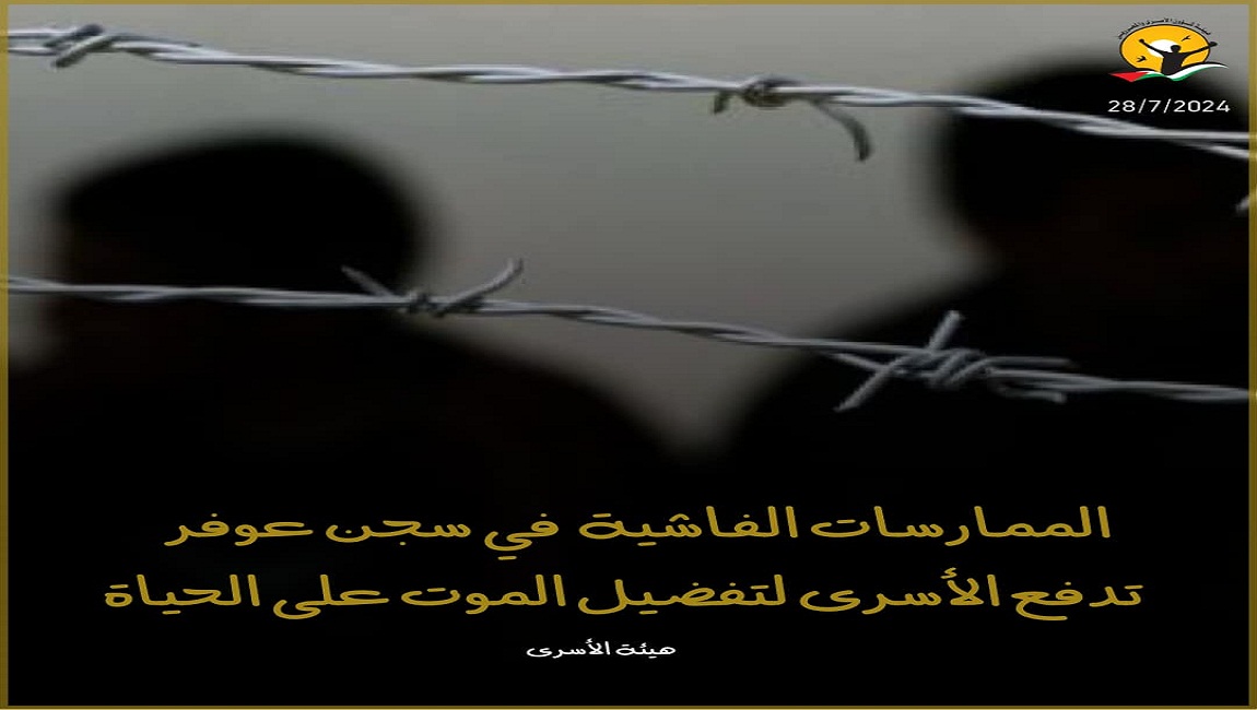 طباعة الممارسات الفاشية في سجن عوفر تدفع الأسرى لتفضيل الموت على الحياة في 28 تموز/يوليو 2024. نشر في السجون والمعتقلات