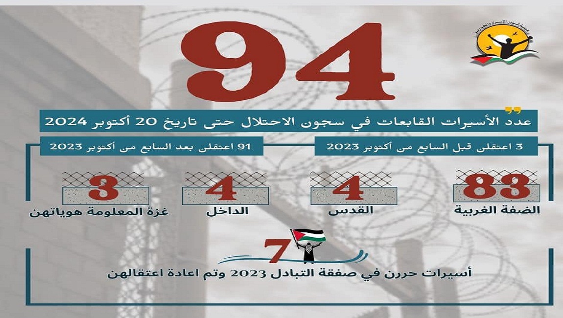 طباعة 425 حالة اعتقال بين صفوف النساء منذ 7 اكتوبر 2023 حتى 20 اكتوبر 2024 في 20 تشرين1/أكتوير 2024. نشر في الاسيرات
