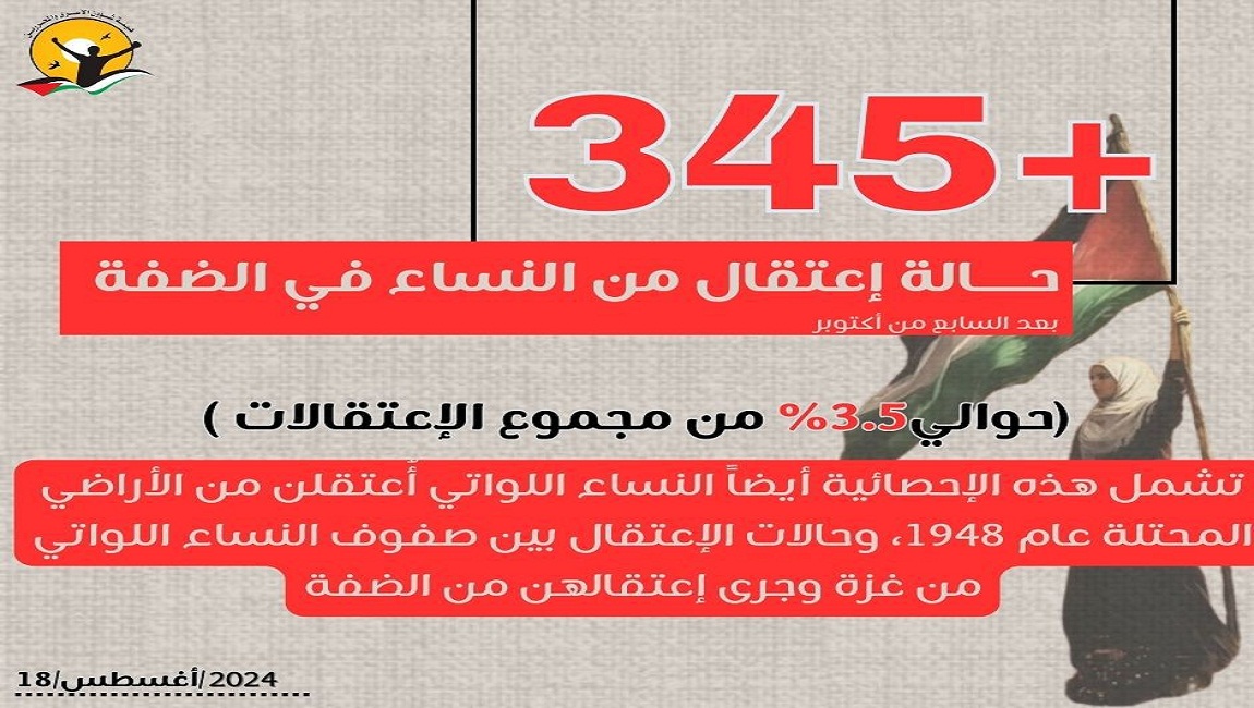 طباعة 345+ حالة اعتقال من النساء في الضفة الغربية بعد السابع من اكتوبر الماضي في 18 آب/أغسطس 2024. نشر في الاسيرات