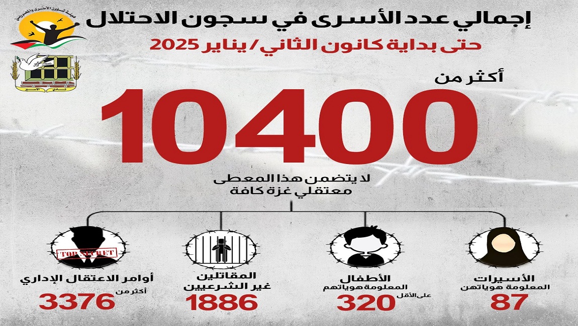 طباعة ■ تحديث لأعداد الأسرى لشهر كانون الثاني/ يناير 2025، علما أن هذه المعطيات لا تشمل المعتقلين كافة من غزة في 09 كانون2/يناير 2025. نشر في تقارير احصائية