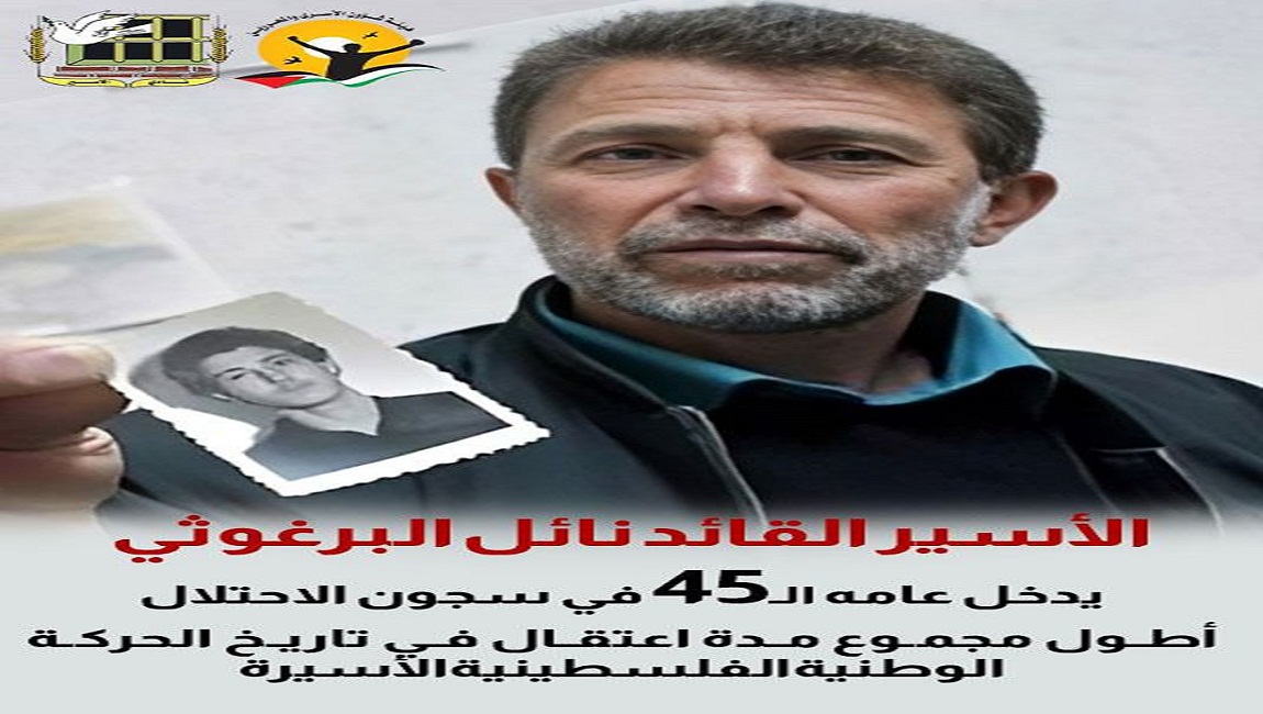 طباعة هيئة الأسرى ونادي الأسير: الأسير القائد نائل البرغوثي يدخل عامه الـ45 في سجون الاحتلال في 20 تشرين2/نوفمبر 2024. نشر في الاسرى القدامى