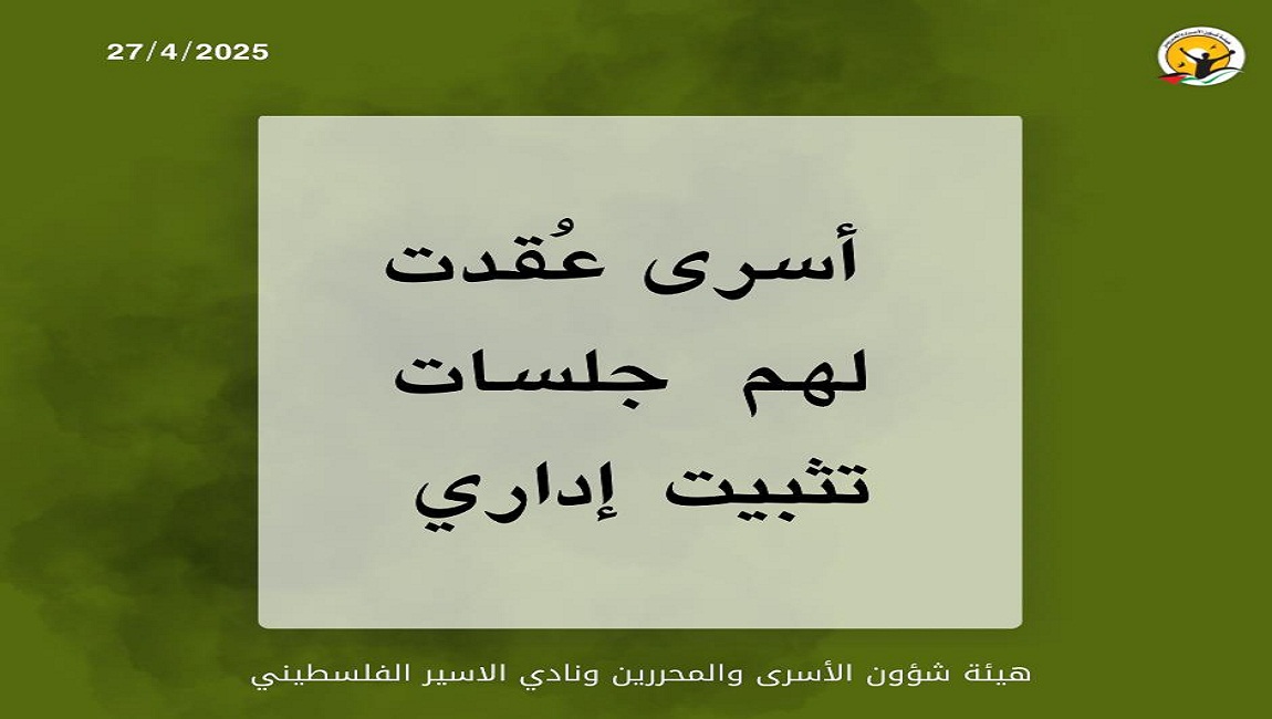 طباعة قائمة بأسماء أسرى ستعقد لهم جلسات تثبيت بتاريخ 28/4/2025 في 27 نيسان/أبريل 2025. نشر في الاعتقال الاداري