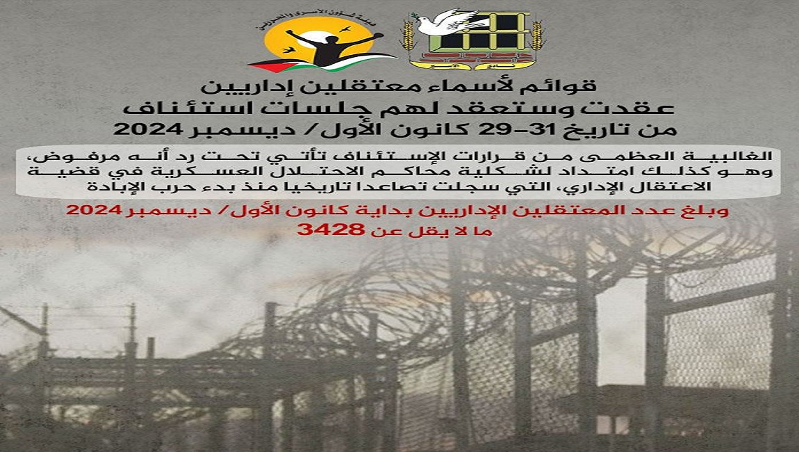 طباعة أسماء المعتقلين الذين ستعقد لهم جلسات تثبيت في تاريخ 9 كانون الأول في محكمة سالم العسكرية في 08 كانون1/ديسمبر 2024. نشر في الاعتقال الاداري