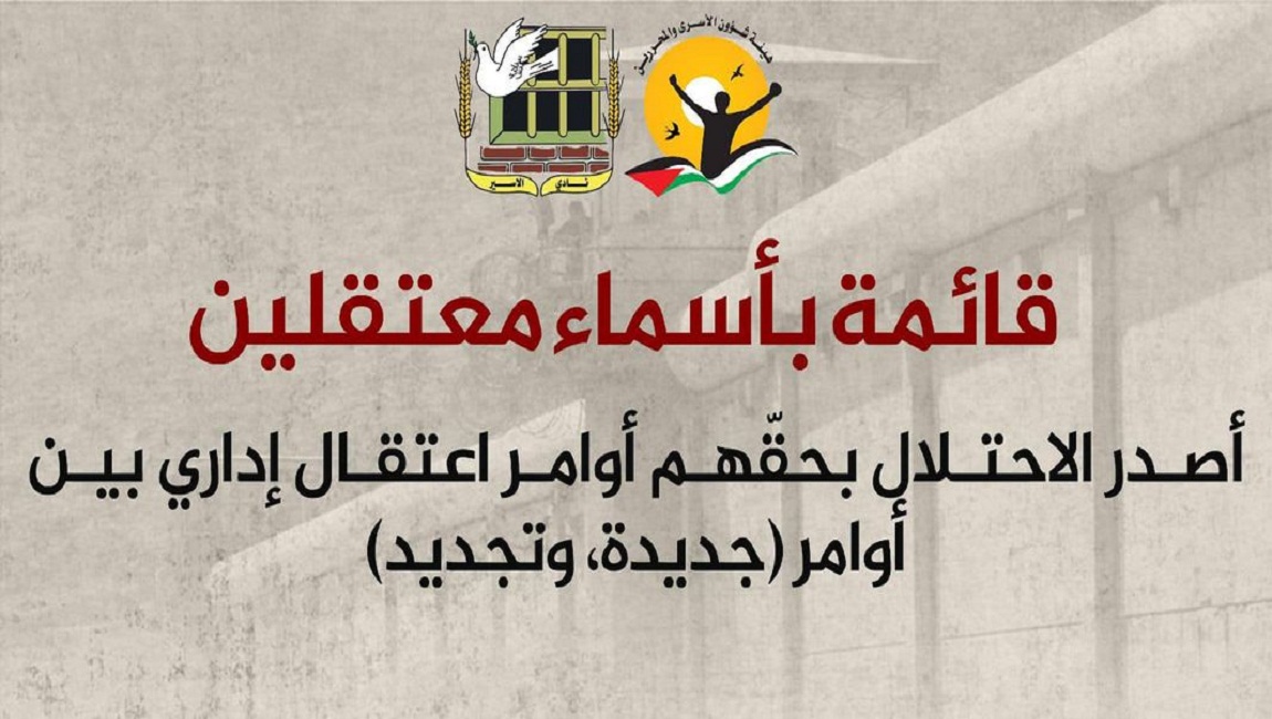 طباعة 🔴 قائمة بأسماء معتقلين إداريين صدرت بحقهم أوامر اعتقال إداري بين أوامر جديدة وأوامر تجديد في 22 كانون1/ديسمبر 2024. نشر في الاعتقال الاداري