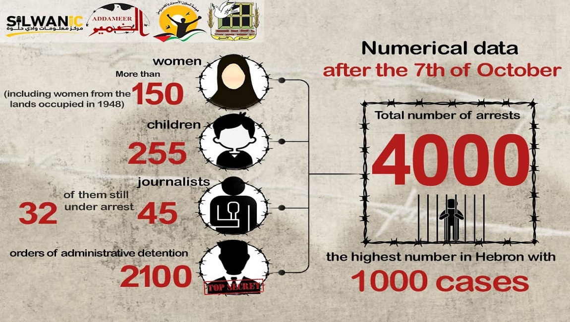 Accordingly, (4540) arrest cases have been recorded since October 7, including those who were arrested from their homes, checkpoints and others who surrendered themselves under threat and held as hostages.