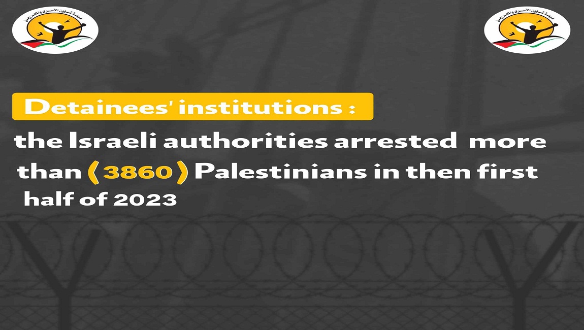 Print Semi-annual report issued by detainees' institutions on detention, violations and latest statistics Detainees' institutions: the Israeli authorities arrested more than (3860) Palestinians in the first half of 2023 on 23 July 2023. Posted in statistical reports