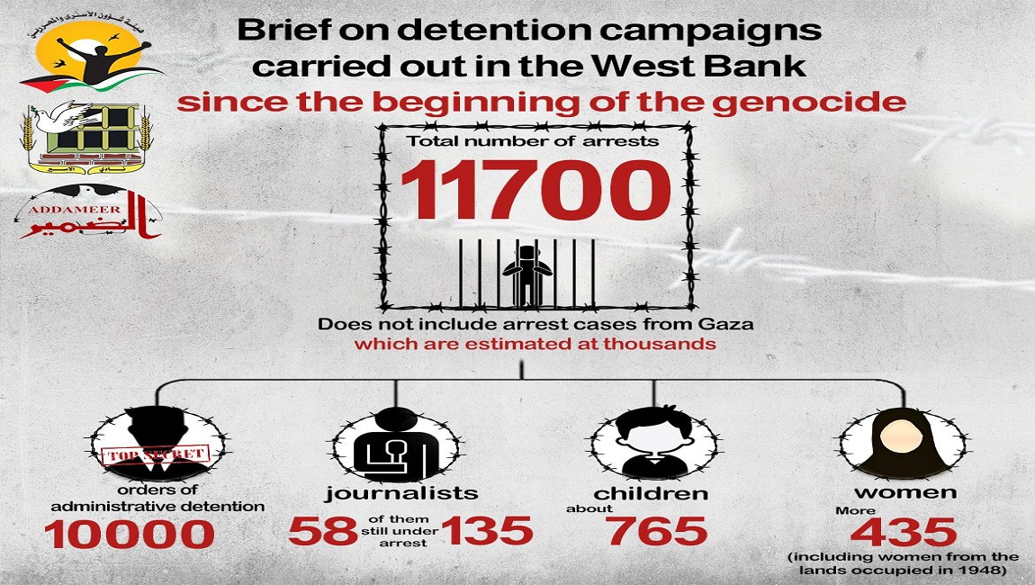 Print 🔴 Brief on detention campaigns carried out in the West Bank since the beginning of the genocide on 13 November 2024. Posted in slider
