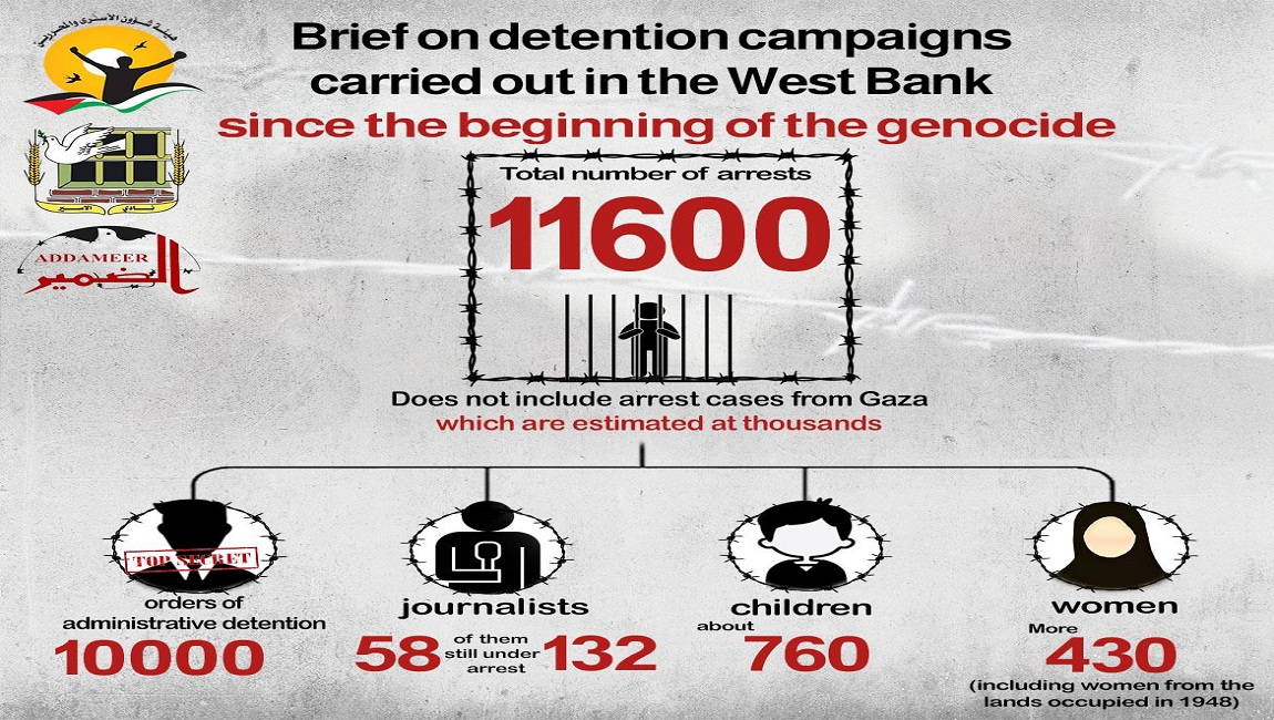 Print 🔴 Brief on detention campaigns carried out in the West Bank since the beginning of the genocide 🔴 Excluding arrest cases in Gaza estimated at thousands on 06 November 2024. Posted in slider